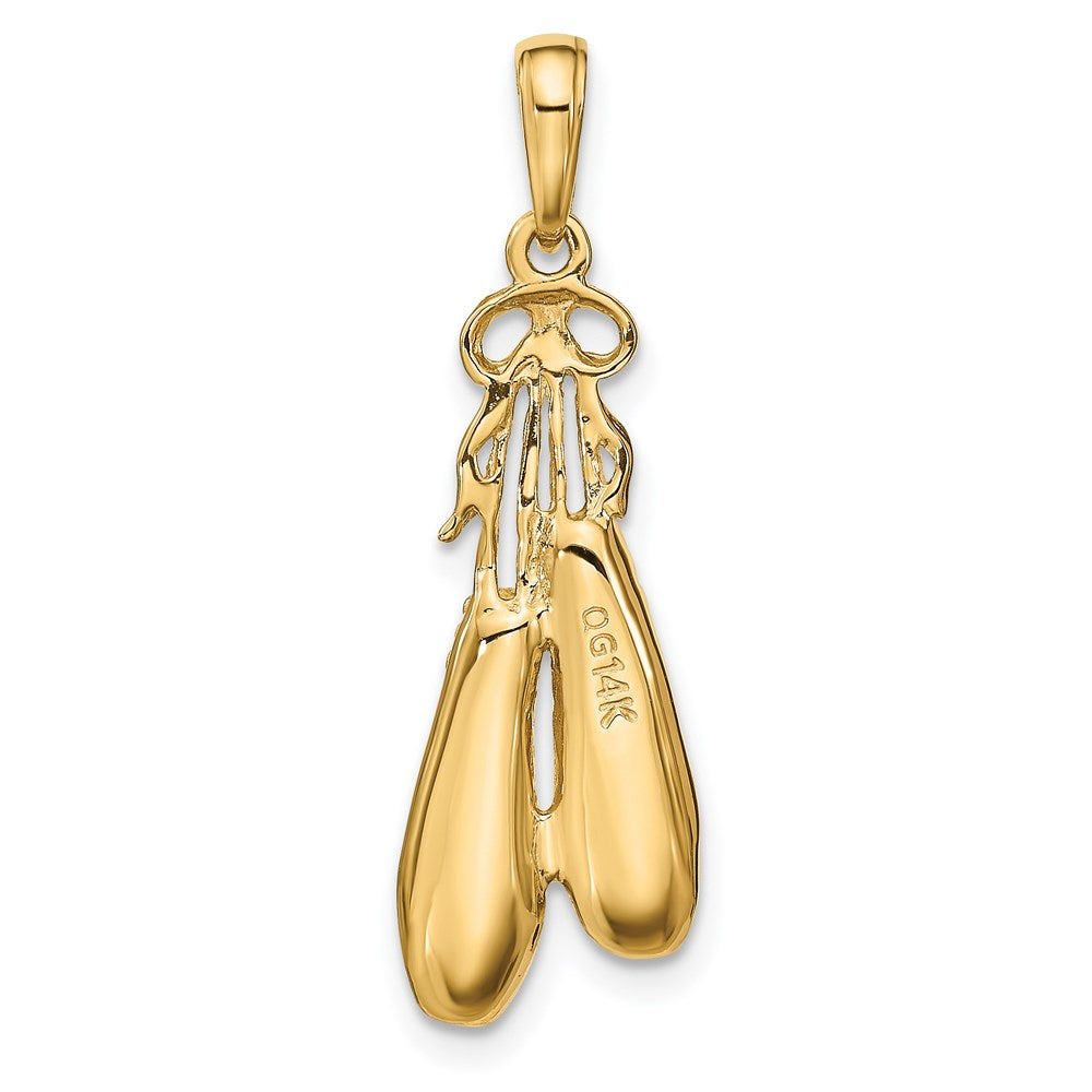 14k Yellow Gold Satin and Polished Ballet Slippers Pendant - Black Bow Jewelry Company