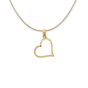 • This stunning yellow gold reversible heart shaped pendant is crafted from 14k gold with a satin and diamond cut finish. It measures approximately 23mm in width and features a standard tapered bail that easily slips onto a necklace chain of your choice. Includes a 18 inch long, 0.9mm wide, solid 14k yellow gold cable chain with a spring ring clasp.