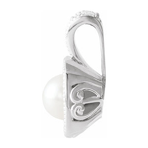14K Yellow or White Gold FW Cultured Pearl & Diamond Pendant, 11x17mm