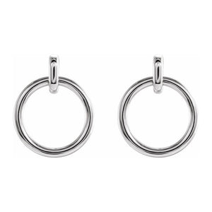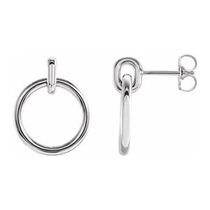 A simple yet timeless design will add a touch of easy elegance to your day. These polished open circle dangle post earrings are fashioned from rhodium-plated 14k white gold. The approximate diameter is 14mm (9/16 inch) by 18mm (11/16 inch) in length. Friction backs included.