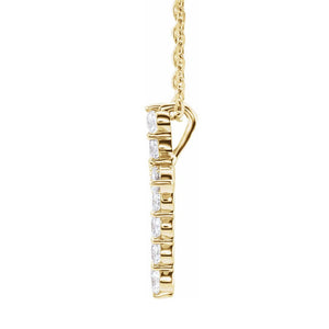 14K Yellow, White or Rose Gold Diamond 11-Stone Cross Necklace 16-18in - Black Bow Jewelry Company