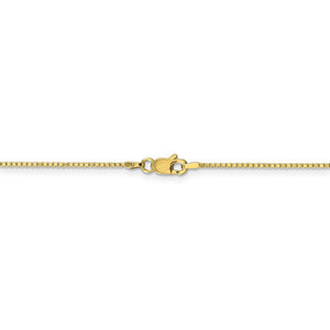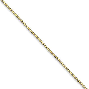 Known for its strength and flexibility, this gleaming box chain features a simple design that is less likely to kink and a polished finish that catches the light with every movement. It measures 1mm in width and is fashioned from 10k yellow gold with a classic, lobster-claw clasp. 22 inches in length.
