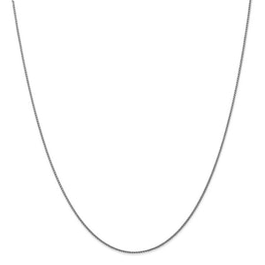 Interwoven solid links of diamond-cut 14k white gold form a sparkling braided design that will add elegance and beauty to your favorite charm or pendant. This delicate 1mm width, 18-inch long spiga chain necklace closes with a classic lobster-claw clasp.
