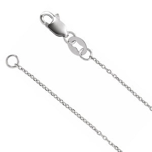 • Simple traditional style, round open links of sterling silver interlock to form a beautiful cable chain that sparkles and shines in the light thanks to the diamond-cut finish. This solid link, delicate necklace is approximately 1.0 mm in width, adjustable in length from 16-18 inches and closes with a lobster claw clasp.