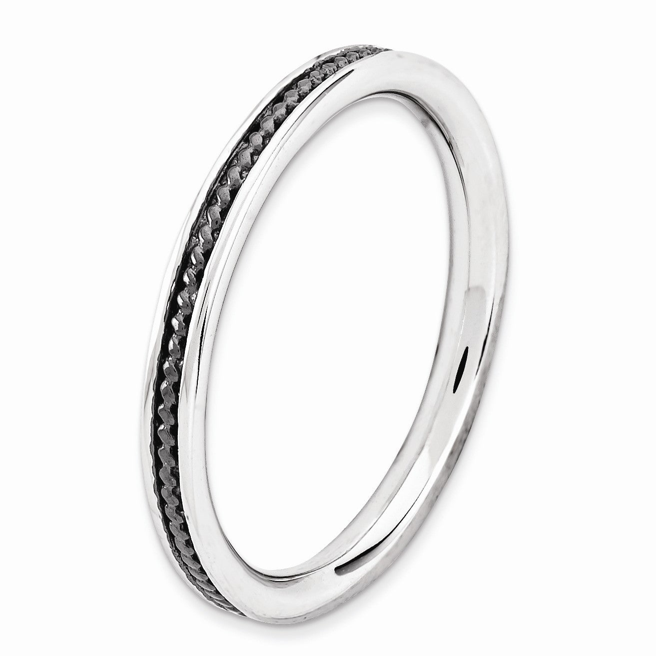 Make it simple and stylish with stackable bands of different textures, finishes, widths and colors! This rhodium plated sterling silver band features a black ruthenium channeled center with a polished finish that measures 2.5mm wide. Guaranteed to fit together perfectly with all of the mix and match Stackable Expressions rings.