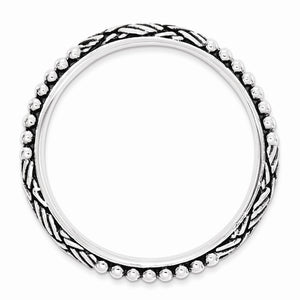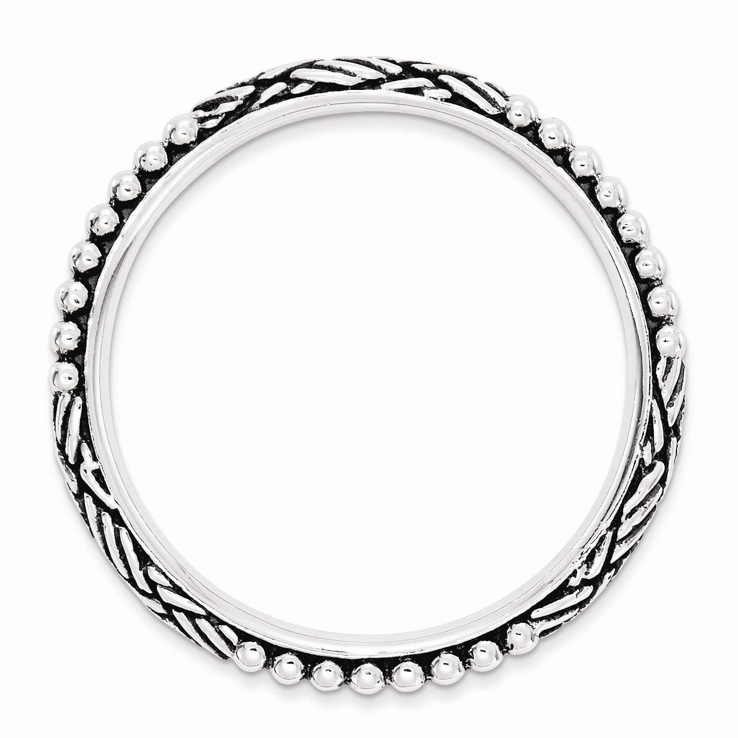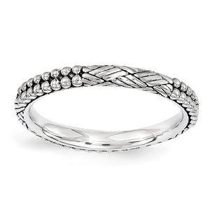 • Make it simple and stylish with stackable bands of different textures, finishes, widths and colors! This sterling silver band features a dual patterned design with an antiqued finish that measures 2. Mm wide. Guaranteed to fit together perfectly with all of the mix and match Stackable Expressions rings.