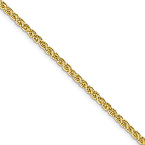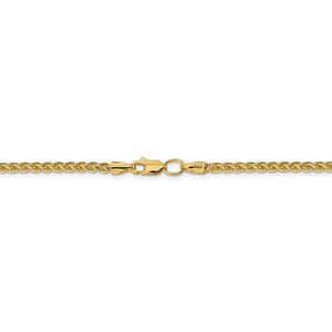 • Strands of 14k yellow gold are braided and woven together to create a spectacular wheat pattern for this 2.75mm width, 18-inch long chain that closes with a lobster-claw clasp. Looks great alone, layered with multiple chains or pair it with a gold charm or pendant to complete your desired look. Hollow link design.