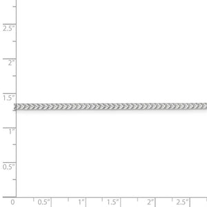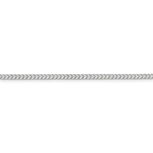 • Franco chains are extremely popular thanks to its unique, flexible and resilient design. Fashioned from rhodium-plated 14k white gold with a high-polished finish, this beautiful chain measuring 2mm in width closes with a secure, lobster clasp to keep it safely in place. 8 inches in length.
