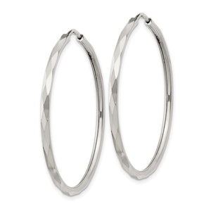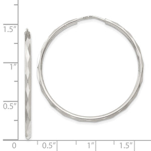 2mm, Sterling Silver, Diamond Cut Geometric Hoops - 35mm (1 3/8 Inch)