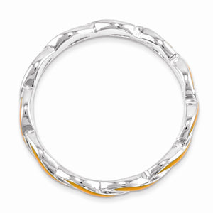 • Create the perfect stack with enameled bands available in 10 vibrant colors. This tarnish resistant rhodium plated sterling silver stackable band features a twisted swirl design accented with Orange enamel and is approximately 2. Mm in width. Guaranteed to fit together perfectly with all of the mix and match Stackable Expressions rings.