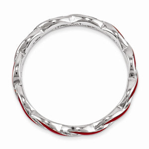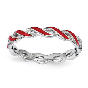 • Create the perfect stack with enameled bands available in 10 vibrant colors. This tarnish resistant rhodium plated sterling silver stackable band features a twisted swirl design accented with Red enamel and is approximately 2. Mm in width. Guaranteed to fit together perfectly with all of the mix and match Stackable Expressions rings.
