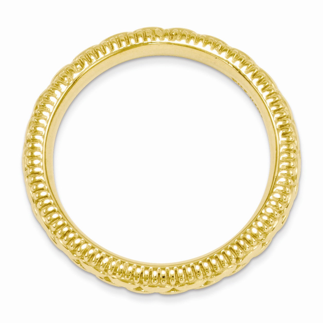 • Make it simple and stylish with stackable bands of different textures, finishes, widths and colors! This 14k yellow gold-plated sterling silver band features a rice bead style pattern and coin edge design with a polished finish that measures 3. Mm wide. Guaranteed to fit together perfectly with all of the mix and match Stackable Expressions rings.