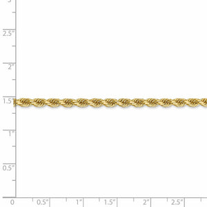 Spiraling rope chain necklaces made of 14k yellow gold enhanced with diamond-cuts are extremely popular because they offer a classic style with maximum shine. Measures 3.5mm in width by 24-inches in length and features a solid link design with a lobster-claw clasp.