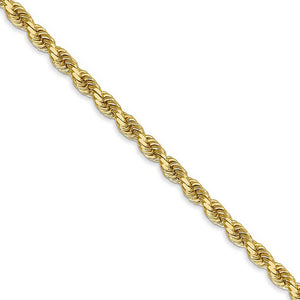 Spiraling rope chain necklaces made of 14k yellow gold enhanced with diamond-cuts are extremely popular because they offer a classic style with maximum shine. Measures 3.5mm in width by 22-inches in length and features a solid link design with a lobster-claw clasp.