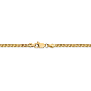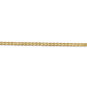 Wrap yourself in golden luxury with our elegant flat wheat chain crafted from gleaming 14k yellow gold. A strong lobster-claw clasp keeps this modest 3mm chain safely fastened. 7 inches in length.