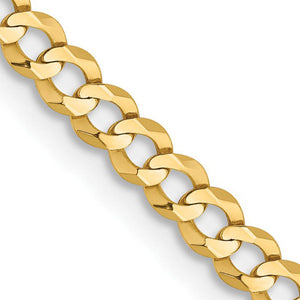 Ageless and classic, a curb or Cuban chain is one of the most durable single link styles. This women's polished bracelet is created from 14k yellow gold and features a lightweight, solid link, flat open curb chain design that is approximately 3mm in width by 8-inches in length and closes with lobster claw clasp.