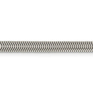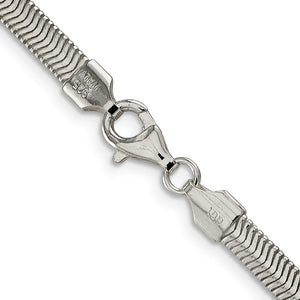 Known for its strength and smooth appearance, this soft and supple snake chain featuring a unique flat oval design is fashioned from sterling silver with a fancy lobster clasp. The solid link construction makes it lightweight and comfortable for everyday wear. Women's, 7 inches in length, 4.2mm in width. Made in Italy.