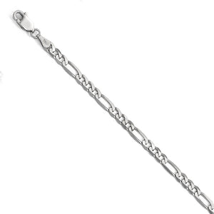 Round and oval links made of polished 14k white gold interlock in a reoccurring three and one pattern that closes with a lobster claw clasp. The easy elegance of a flat Figaro chain looks great with dress or casual wear and the 4mm width is perfect on its own or paired with other chains for a layered look. Length 8-inches