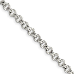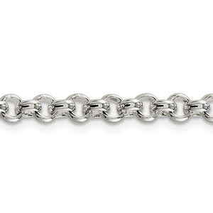 Sleek and chic, a polished sterling silver rolo chain featuring broad solid links with a domed design. Its versatile and attractive style makes it an excellent choice as a solo chain or combined with multiple chains for a layered look. This bracelet is approximately 5mm in width, 8.5-inches in length and closes securely with a lobster claw clasp.
