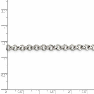 Sleek and chic, a polished sterling silver rolo chain featuring broad solid links with a domed design. Its versatile and attractive style makes it an excellent choice as a solo chain or combined with multiple chains for a layered look. This bracelet is approximately 5mm in width, 7.5-inches in length and closes securely with a lobster claw clasp.