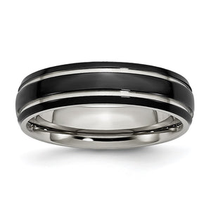 6mm Black Plated Stainless Steel Domed Grooved Comfort Fit Band - Black Bow Jewelry Company