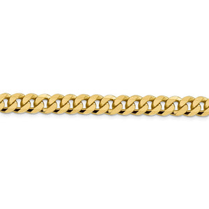 Flat curb links of 14k yellow gold enhanced with beveled edges form an attractive bracelet that looks great alone or layered with multiple chains to complete your desired style. It features solid links that measures 8.75mm in width by 9-inches in length and closes with a reliable lobster clasp.