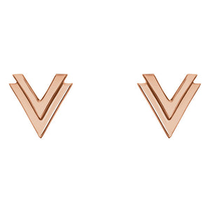 8 x 8mm (5/16 Inch) Polished 14k Rose Gold Small Double 'V' Earrings - Black Bow Jewelry Company