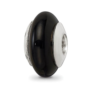 Black Agate Stone & Sterling Silver Bead Charm, 14mm - Black Bow Jewelry Company