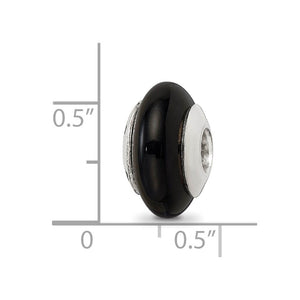 Black Agate Stone & Sterling Silver Bead Charm, 14mm