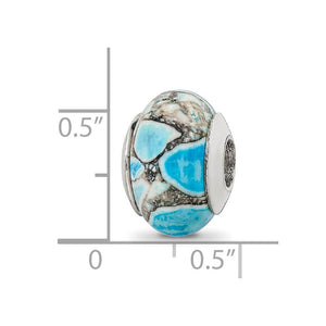 Blue Mosaic Magnesite Stone & & Sterling Silver Bead Charm, 13mm