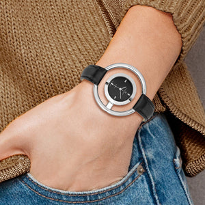 Charles Hubert Ladies Chrome Finish Black Dial Modern Circle Watch