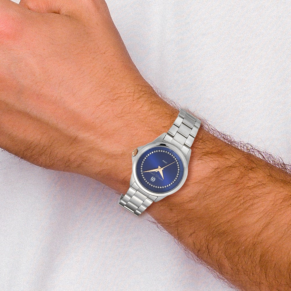 Charles Hubert Mens Stainless Steel Blue Crystal Dial Watch - Black Bow Jewelry Company