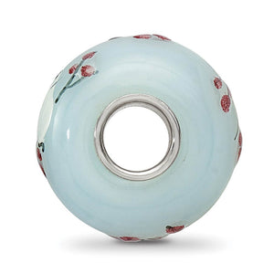 Each meticulously hand-blown hand-painted Fenton glass charm is initialed by the artist and finished with a ceramic glaze and a sterling silver core embossed with Fenton USA! This pale blue charm features a bird and floral design that is approximately 8mm in width by 15mm in length. Fenton Made in America handcrafted glass beads are compatible with and will fit most major brand, 3mm width, bead style bracelets and necklaces. Colors and size may vary slightly.