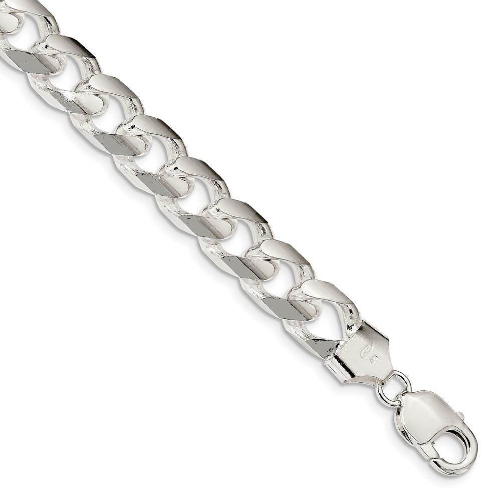 Ageless and classic, a curb chain is one of the most durable styles. This polished bracelet chain created from sterling silver with an anti-tarnish coating features a solid curb link design, a domed profile, and diamond-cut sides. It is approximately 11mm in width by 9-inches in length including the lobster claw clasp.
