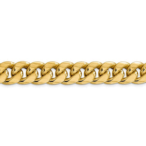 • Ageless and classic, a wide Miami Cuban curb chain is eye-catching and fashionable. The 14k yellow gold hollow links on this polished bracelet chain are 12.5mm in width by 9-inches in length and close with a sturdy lobster clasp.