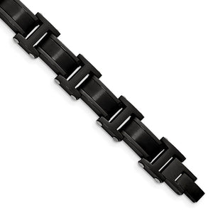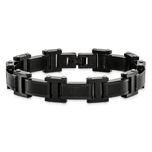 Men's 12.5mm Black Plated Stainless Steel Link Bracelet, 8.25 Inch