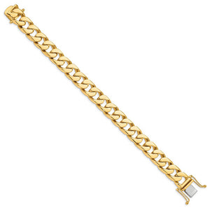 Men's 14k Yellow Gold, 12mm Flat Beveled Curb Chain Bracelet, 8 Inch