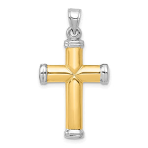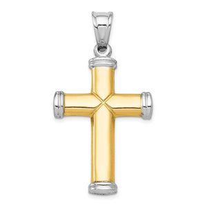 Men's 14k Yellow Gold & White Rhodium Hollow 3D Cross Pendant - Black Bow Jewelry Company