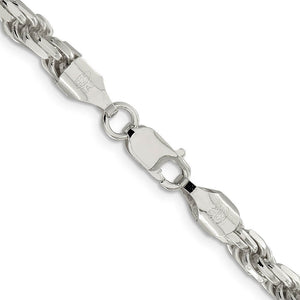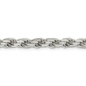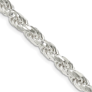Rope chains made of twisted and braided sterling silver enhanced with diamond-cuts are extremely popular because they offer a classy design with maximum shine. Flexible and strong, this elegant bracelet measures approximately 5.75mm in width by 9-inches in length and features a solid link construction with a sturdy lobster claw clasp. Made in Italy.