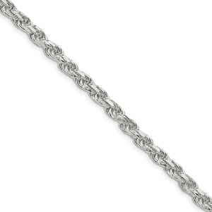 • Rope chain bracelets made of twisted and braided sterling silver enhanced with diamond-cuts are extremely popular because they offer a classy design with maximum shine. Flexible and strong, this elegant chain measures 5.75mm in width by 9-inches in length and features a solid link construction with a reliable lobster claw clasp.