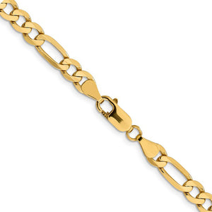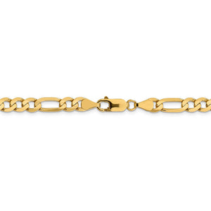 Round and oval links made of polished 14k yellow gold interlock in a reoccurring three and one pattern that closes with a lobster claw clasp. The easy elegance of a flat Figaro chain looks great with dress or casual wear and the 6.25mm width provides versatility for both men and women.