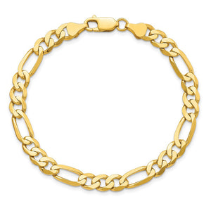 Men's 7mm 14K Yellow Gold Solid Flat Figaro Chain Bracelet