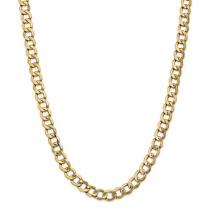 Clean, geometric lines and the lustrous glow of our 14k yellow gold curb chain make this an excellent choice for casual or evening wear. This one features lightweight hollow links that are 8mm in width by 24-inches in length and closes with a lobster-claw clasp.