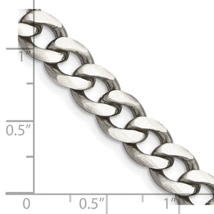 • Ageless and classic, a curb or Cuban chain is one of the most durable single link styles. This antiqued bracelet chain is created from sterling silver and features a solid link, flat curb design that is approximately 8mm in width by 9-inches in length and closes with lobster claw clasp.