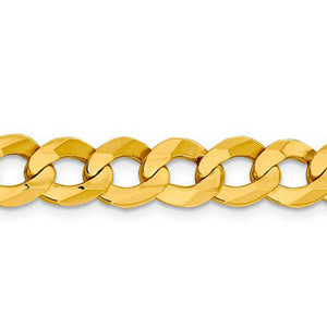 Mens 9.25mm 14K Yellow Gold Solid Lightweight Flat Curb Chain Bracelet