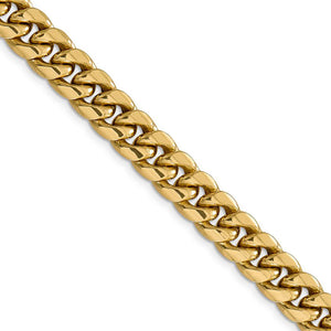 • Ageless and classic, a wide Miami Cuban curb chain is eye-catching and fashionable. The 14k yellow gold hollow links on this polished necklace chain are 9.3mm in width by 22-inches in length and close with a sturdy lobster clasp.