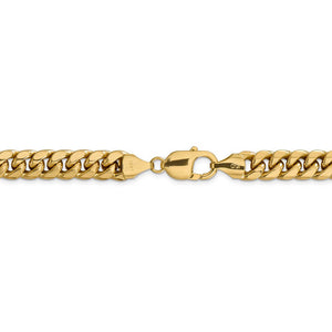 • Ageless and classic, a wide Miami Cuban curb chain is eye-catching and fashionable. The 14k yellow gold hollow links on this polished necklace chain are 9.3mm in width by 30-inches in length and close with a sturdy lobster clasp.