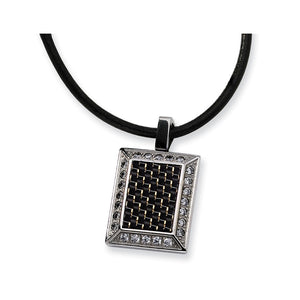 Men's Stainless Steel, Black Carbon Fiber & CZ Necklace, 22 Inch