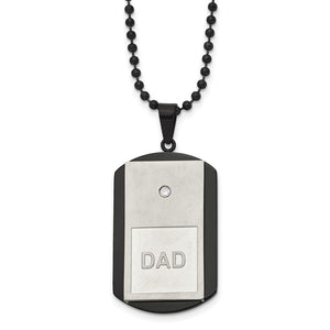 Men's Stainless Steel, Black Plated & CZ DAD Dog Tag Necklace, 22 Inch