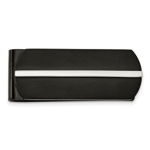 Men's Stainless Steel & Black Plated Striped Fold Over Money Clip